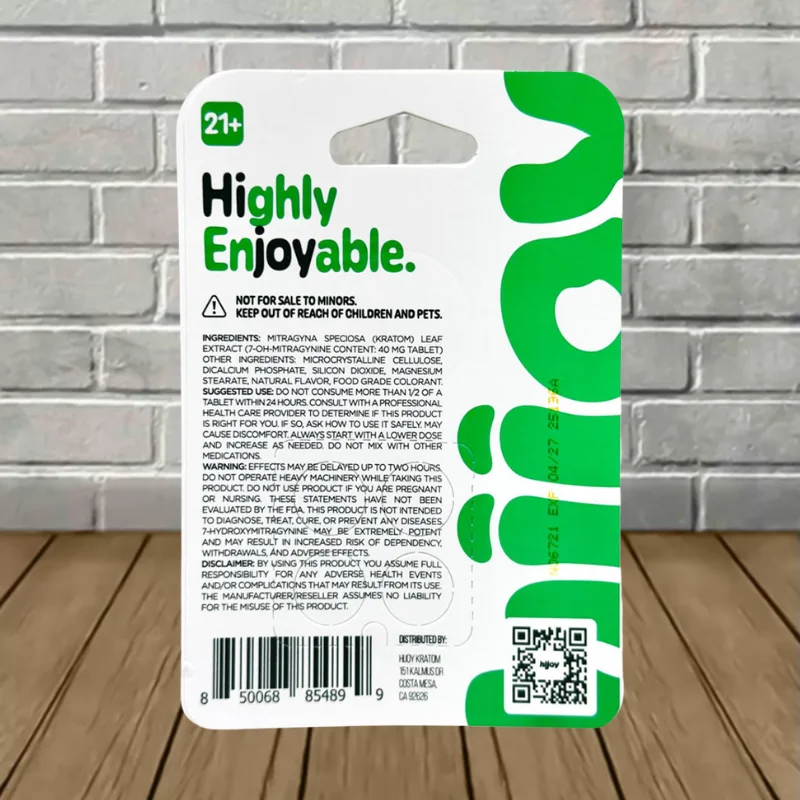 Big power, small tablet. Hijoy 7-Hydroxy Extra Strength Tablets 40mg is your new go-to when you want serious effects without the hassle. Each chewable packs a punch with 40mg 7-OH kratom tablets made from pure 7-hydroxymitragynine. No powder clouds, no capsules to swallow — just chew and let the good vibes roll.