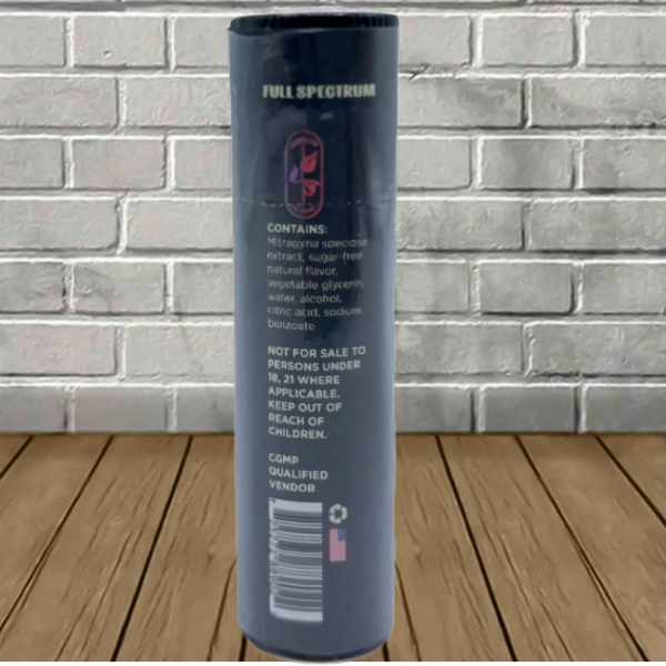 Ingredient List:Â Mitragyna Speciosa extract, sugar-free natural flavor, vegetable glycerin, water, alcohol, citric acid, sodium benzoate.