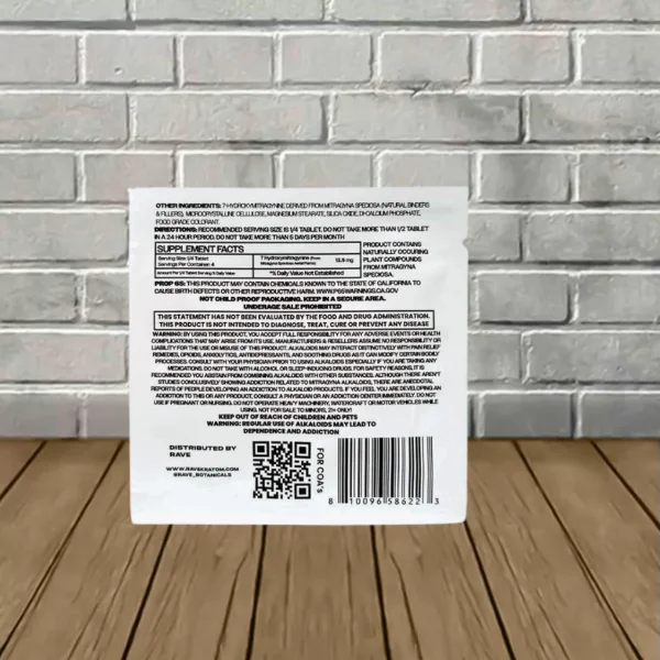 Kratom connoisseurs can testify to the premium quality of Rave products, with the Rave Kratom Seven Hydroxy Liquid Extract Shot 40mg. Now the same quality is available in these 7-Hydroxy tablets.