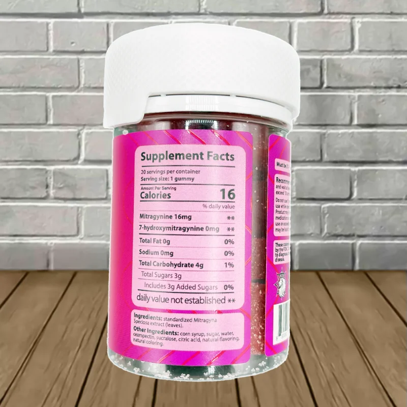 - Every Bottle Contains 20 Gummies, Each Infused With 16mg Mitragynine From A Full Spectrum Kratom Extract